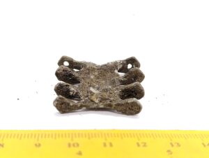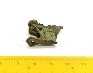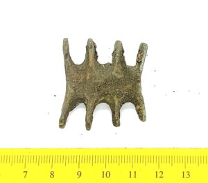 Chain arrangement link, copper alloy. Links of this type are a typical part of chain arrangements found in the 13th-century inhumation graves of Estonian women, but also in the earlier stone graves with mixed cremations. Numerous such links are stray finds. They were worn everywhere in the areas once inhabited by Baltic Finns, and in some other areas, e g in Semigallia (Spirģis 2008, 168–170).