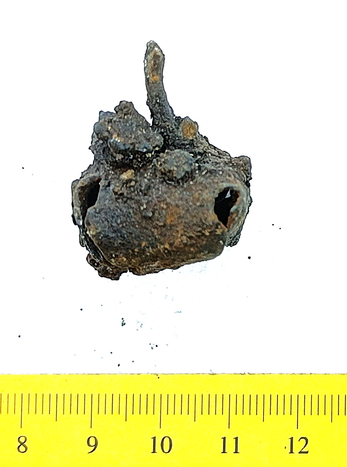 Bridle bells, iron. These iron bells were attached to bridles. In Estonia they have been found from stone graves with cremation burials, where they can also date to the early 13th century.