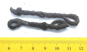 Bridle bells, iron. These iron bells were attached to bridles. In Estonia they have been found from stone graves with cremation burials, where they can also date to the early 13th century.