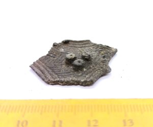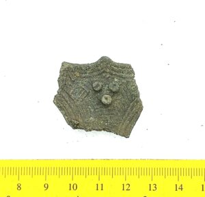 Scales, copper alloy. In both Estonian and Latvian archaeological material scales of this type appeared in the end of the 10th century and were used until the 13th century (Berga 2017, 62). Scales were used mainly to weigh silver (Laul & Tamla 2014, 39).