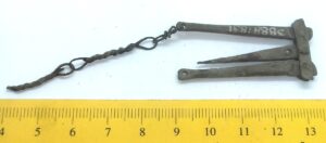 Scales, copper alloy. In both Estonian and Latvian archaeological material scales of this type appeared in the end of the 10th century and they were used until the 13th century (Berga 2017, 62). Scales were used mainly to weigh silver (Laul & Tamla 2014, 39).