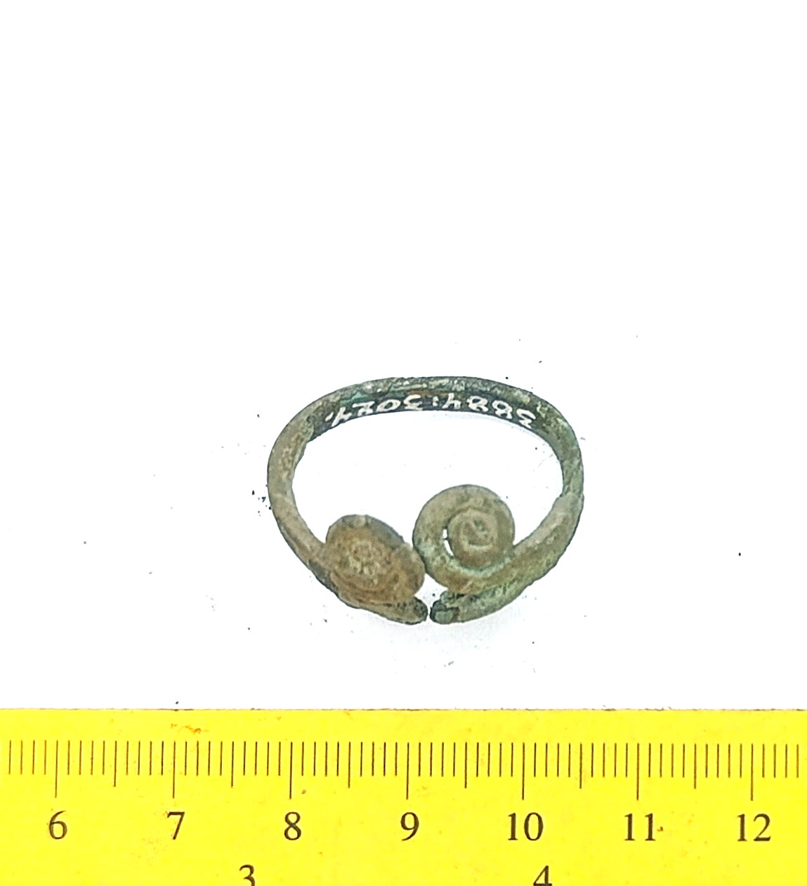 Finger-ring with double-spiral ends, copper alloy. Such rings were worn during a lõng periood, but were widespread in Estonia from the 7th-the 11th century . (Mägi 2002, 108; Tvauri 2014, 149).