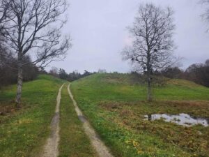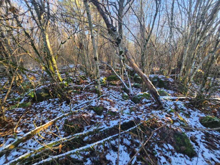 700 m northeast of the Valjala hill fort lies a small, circular fortification just over 50 m in diameter. It was not very prominent – the fort’s rampart was essentially a large stone wall with a wooden fence on top. Minor excavations in 2022 uncovered pottery sherds and animal bones, and cleared out a section of the stone wall. 14C analyses dated the fort primarily to the 8th and 9th centuries.